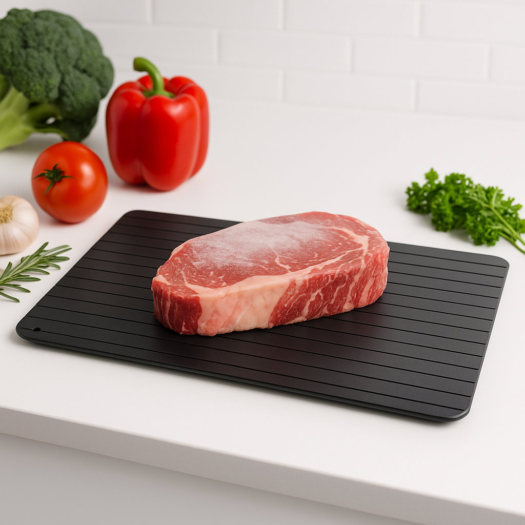 Grâce à notre plaque innovante, vos aliments décongèlent jusqu’à 4 fois plus vite qu’à l’air libre. Sans électricité ni produit chimique, elle préserve la saveur, la texture et les nutriments pour une cuisine rapide et saine.
